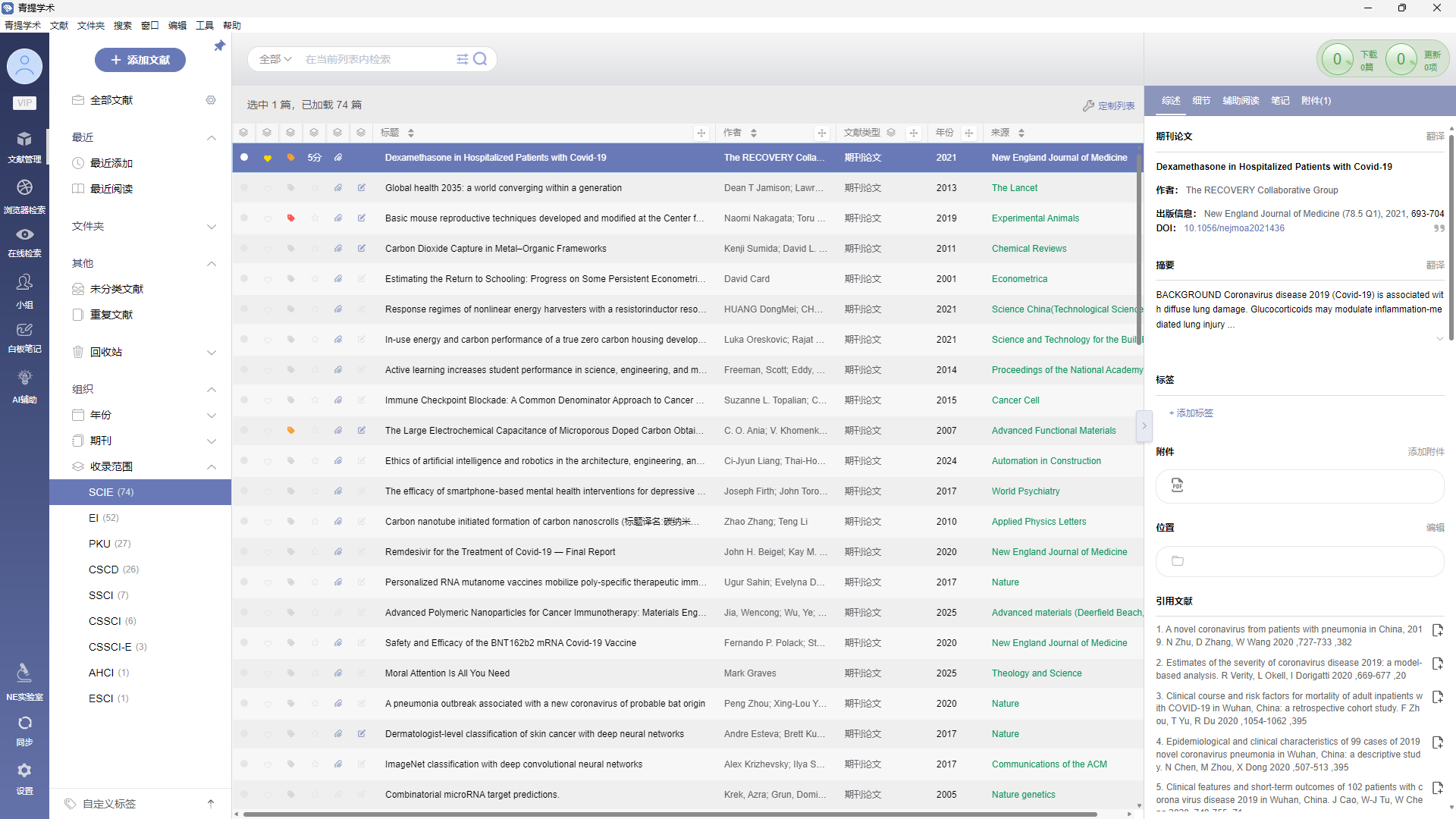 在组织中,支持通过年份、期刊、收录范围等字段快捷筛选文献, 也支持通过对文献添加的标识,如阅读状态、收藏、颜色标签和评分进行快捷筛选, 1)阅读状态:已读和未读 2)收藏:已收藏和未收藏 3)颜色标签 4)评分 文档更新时间: 2025-12-18 16:42 作者:管理员