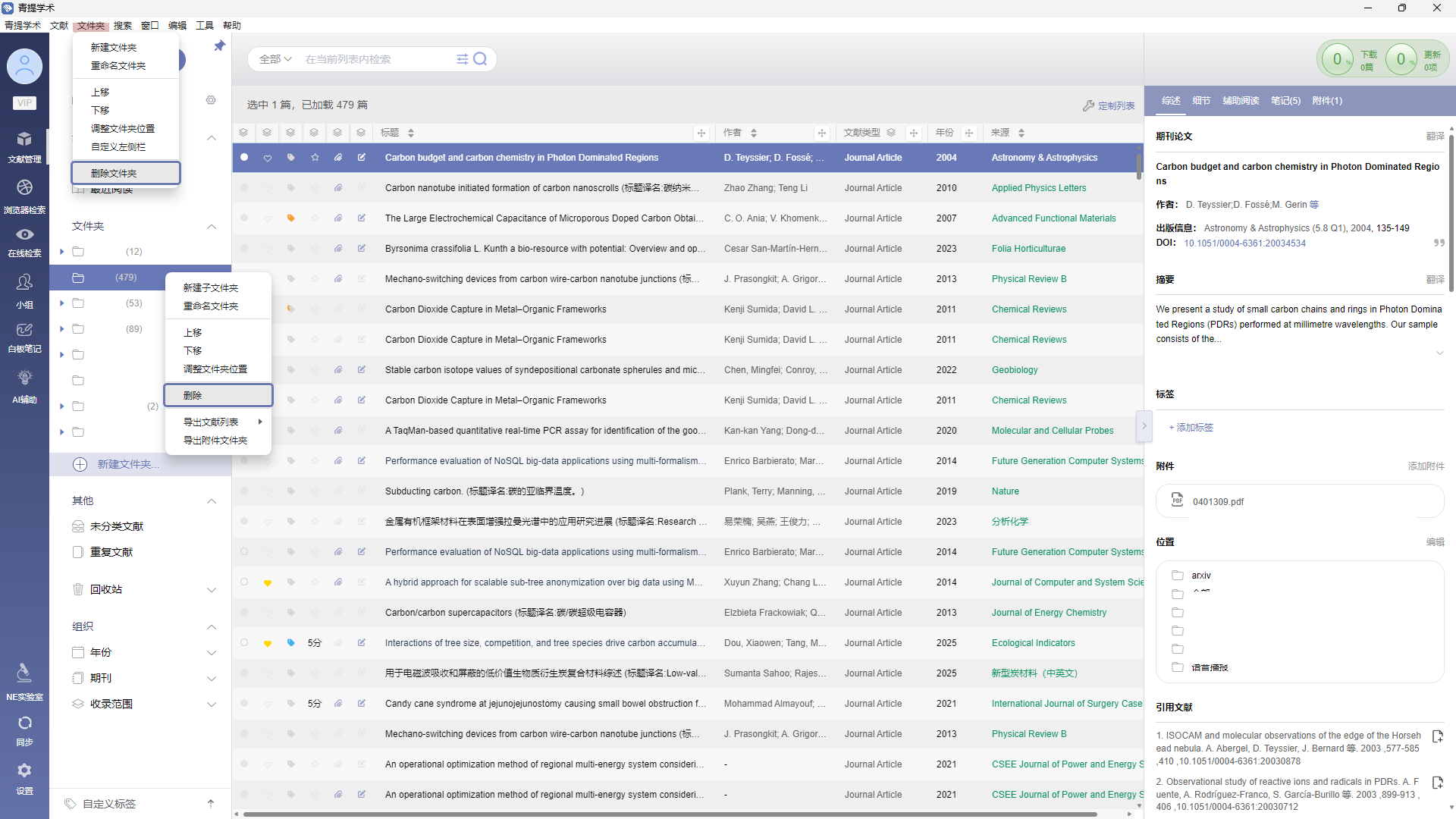 删除文件夹a. 选择要删除的文件夹,通过右键或者文件夹菜单点击 “删除” b. 文件夹被删除后,如原本只存于该被删除文件夹中的文献,会移动到【未分类文献】中 文档更新时间: 2025-12-19 15:53 作者:管理员