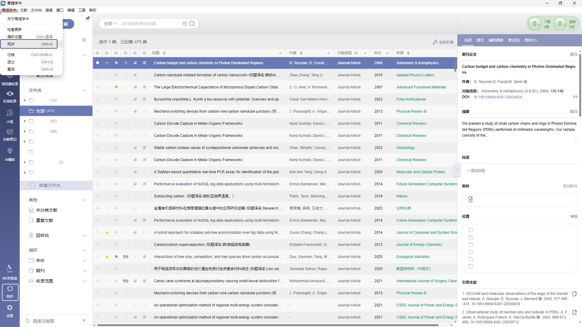 目录 搜索 青提学术简介桌面端使用指南下载及安装用户权益及获取方式普通用户注册及登录使用 CARSI 认证注册机构用户使用“机构代码”注册机构用户文献添加与搜集文件添加PDF、CAJ 文件导入文章信息自动补全格式化文件导入NE数据导入手动添加标识符/标题添加浏览器检索在线检索关键词检索(高级检索)AI 增强检索文献管理目录结构全部文献最近文件夹创建文件夹虚拟文件夹重命名文件夹删除文件夹未分类文献重复文献回收站组织自定义标签列表结构本地检索数据同步数据迁移文献信息综述细节笔记附件手动添加附件自动下载全文手动下载全文更多数据源文献阅读笔记编辑侧栏翻译全文翻译图表提取辅助阅读实用工具小组新建小组在小组内添加文献邀请成员加入小组在小组内阅读与协作青提学术写作插件写作步骤格式化更新题录样式编辑引文定位引文查找引文清除域代码去除格式化设置青提学术CSL写作插件安装指引-Windows系统安装指引-macOS系统安装指引-HarmonyOS系统授权登录写作步骤样式管理AI 辅助写作辅助润色改写降重续写大纲审稿深度研究(v2.5.2)PDF 工具箱青提学术 MCP自定义开发者中心白板笔记WebDAV 同步附件多文献阅读技术支持软件设置移动端使用指南下载注册及登录数据同步、查看、阅读与播报WebDAV 配置数据管理数据添加扫码添加DOI/标题添加检索添加 暂无相关搜索结果! 本文档使用 MinDoc 发布 数据同步 青提学术支持数据同步,实现本地数据和云端数据的同步,以及多台设备间的数据同步。 点击同步按钮 或 快捷键 Ctrl+S 即可同步。 文档更新时间: 2025-12-19 16:15 作者:管理员
