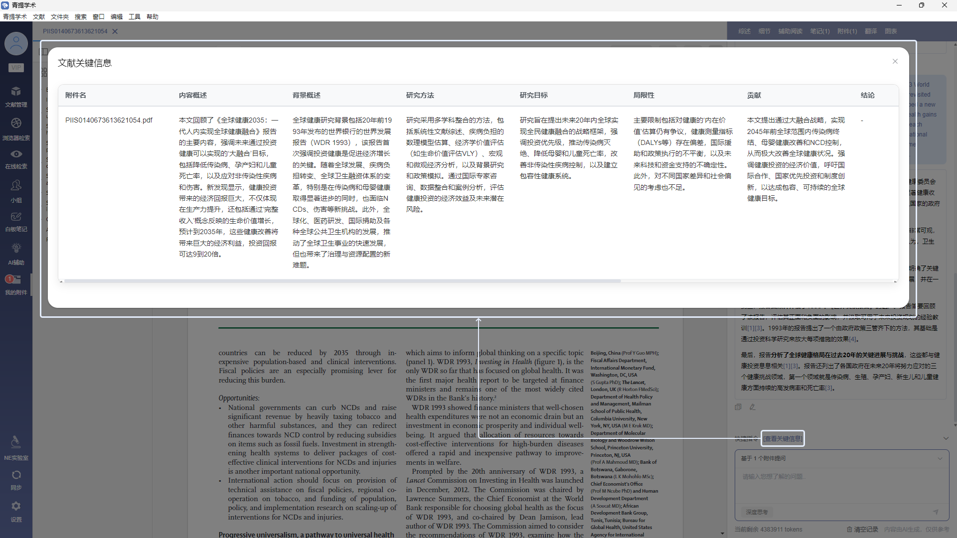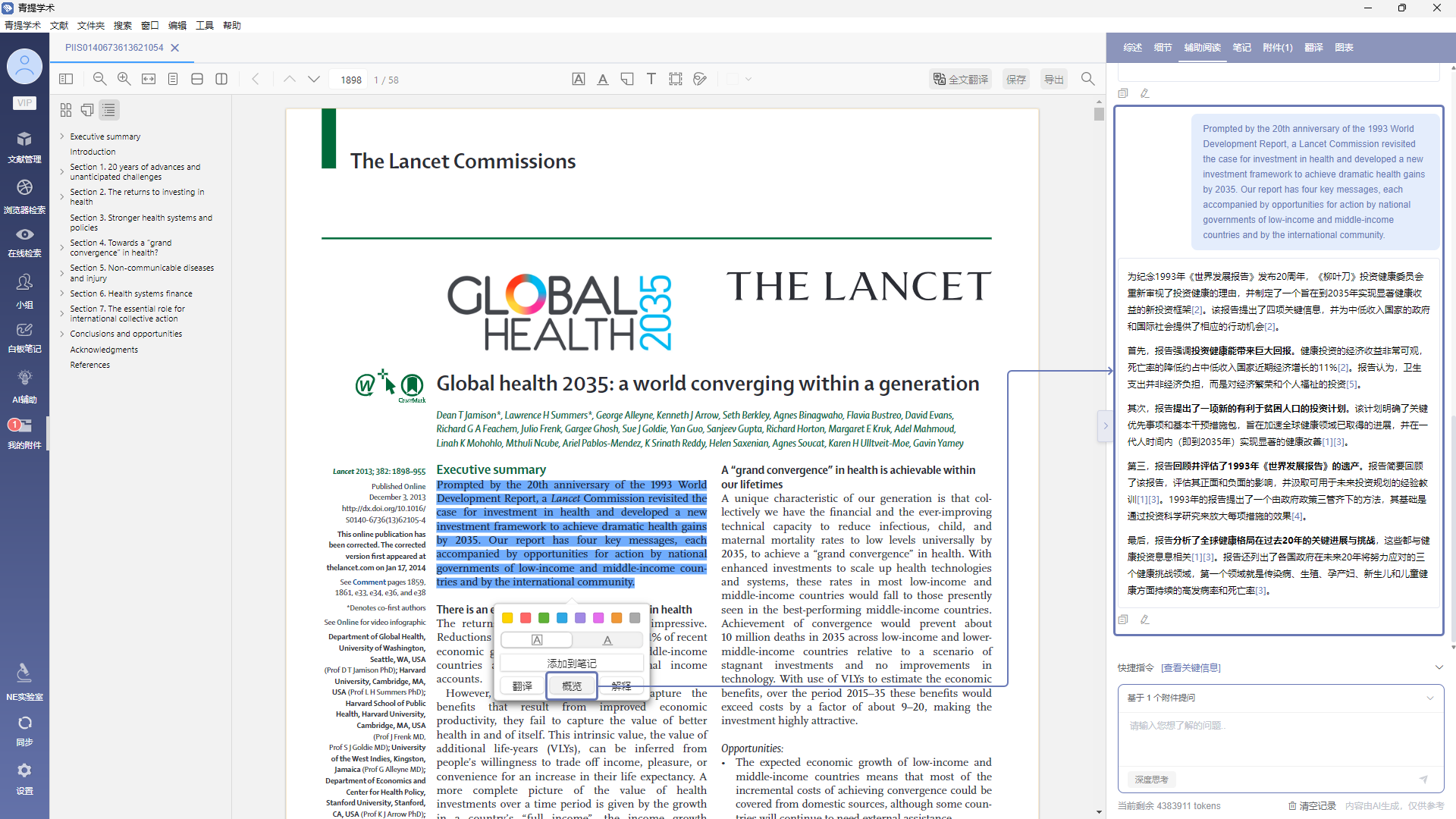 在文献中划词选择,还支持发送对应的文本由 AI 进行概览和解释: