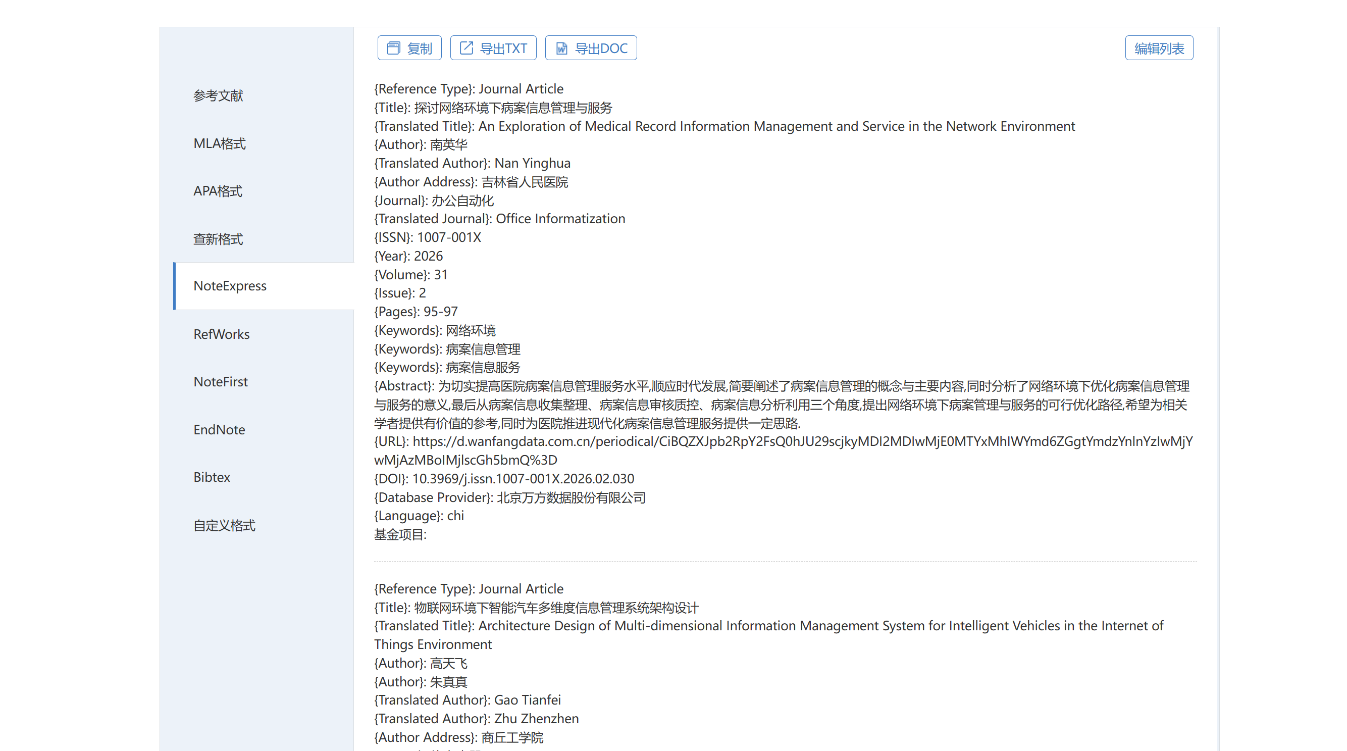 - 可识别的格式化元数据,包括 NoteExpress、RIS、PubMed、BibTeX;