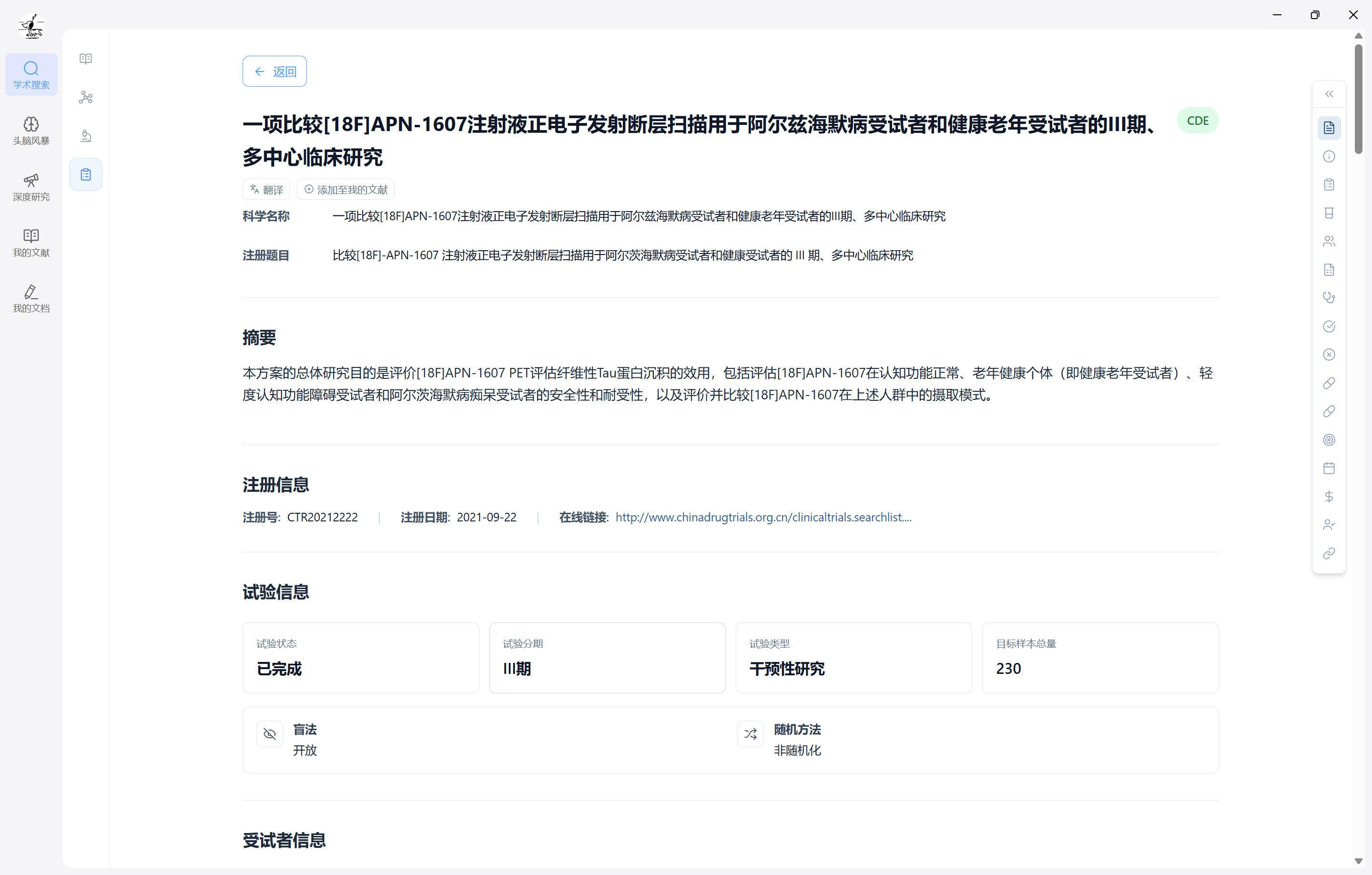 - 检索字段:支持对注册题目、科学题目、摘要、适应症、干预措施等字段进行筛选;